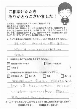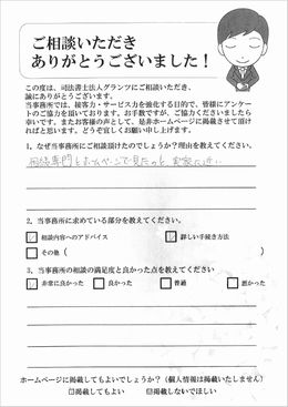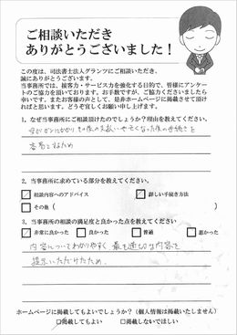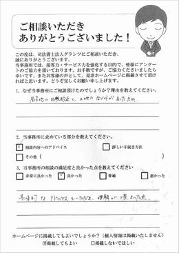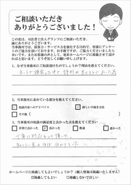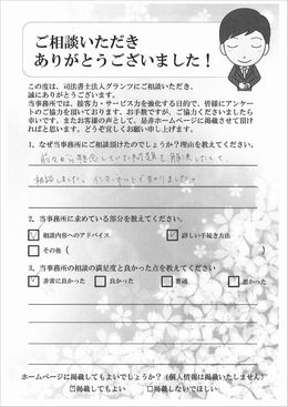 Web で司法書士事務所を検索して、内容を確認してしっかりしている事務所だと感じたので相談をさせて頂きました。