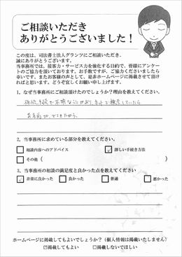 相続の事で伺い色々とご相談させて頂きました。次回妻と伺い依頼しようと思います。